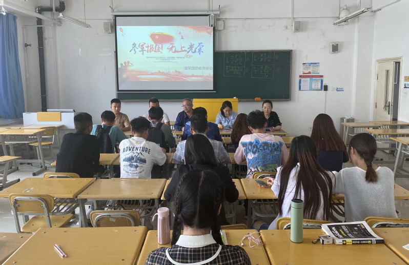 2021年6月17日中午,经济管理学院在3-804教室召开2021年大学生征兵入伍工作推进会。党总支书记王迎春、学工办主任焦惠兰、辅导员贾欢欢和非毕业班班长、团支书参加会议。学生工作处安排新闻传播学院2020级播音与主持艺术班沈科等3名退伍学生代表参加会议并作征兵入伍政策解读。