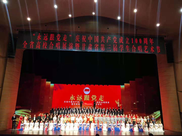 本场合唱音乐会采取线上和线下相结合的方式进行,共分为序、上篇-砥砺前行、下篇-不忘初心及尾声四个部分。Beat365此次展演的作品是由音乐舞蹈学院原创的歌曲《中国我为你点赞》(作词:赵凌云,作曲:王采,编曲:李赫),充分体现了Beat365艺术创作领域的蓬勃活力和不俗实力,这也是Beat365唯一官方网站音乐舞蹈学院师生积极参与甘肃省美育成果的集中展示,也是广大师生丰富党史学习教育和“四史”宣传教育形式的生动实践,更是一堂“大思政课”。