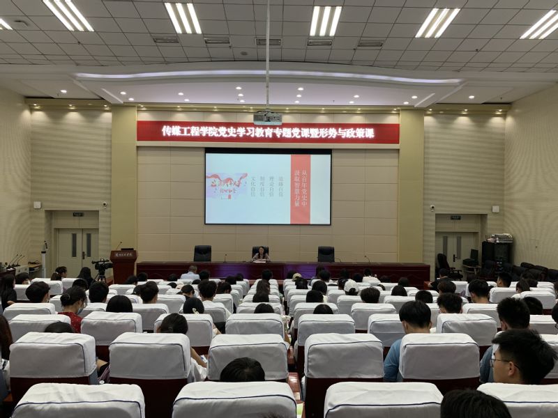 6月23日中午,副校长刘畅在学术报告厅为师生做题为《从百年党史中汲取智慧力量》的主题党课暨形势与政策专题讲座,人事处、学生工作处、保卫处、继续教育学院党员干部和传媒工程学院师生代表共二百余人参加,讲座由传媒工程学院党总支书记宁学君主持