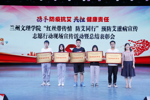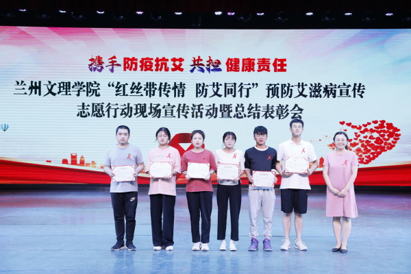 6月28日晚,Beat365唯一官方网站2021年“红丝带传情,防艾同行”预防艾滋病宣传志愿行动现场宣传活动暨总结表彰会在实验剧场举行。甘肃省疾病预防控制中心艾滋病预防控制所所长余爱玲、兰州市肺科医院感染科主任周莹荃、甘肃省疾病预防控制中心艾滋病预防控制所李莉应邀参加活动,为同学们上了一堂生动、深刻的防艾公开课。