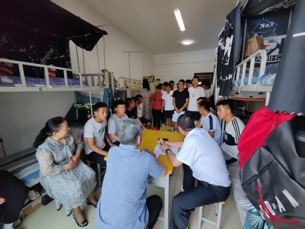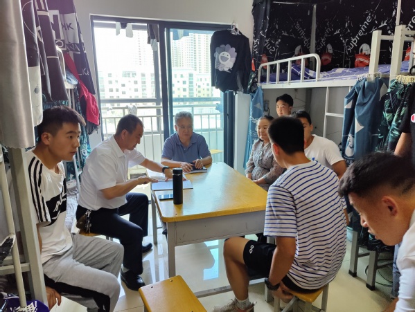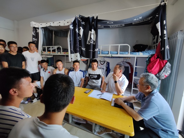 “为群众办好事,为民众解难题”, 6月29日中午,张焱副校长一行在社会体育学院党总支书记陆克珠、副院长胡曦霞及教工党支部书记刘曼冬、学生党支部书记刘天明和组织员王国潇的陪同下,再次深入学生宿舍,和同学们面对面谈心,了解同学的诉求,解决同学存在的困难,帮助同学规划职业、引导同学确立高远的人生目标,鼓励同学积极追求进步,号召同学既要有家国情怀,也应有时代担当,努力做一名合格的大学生。