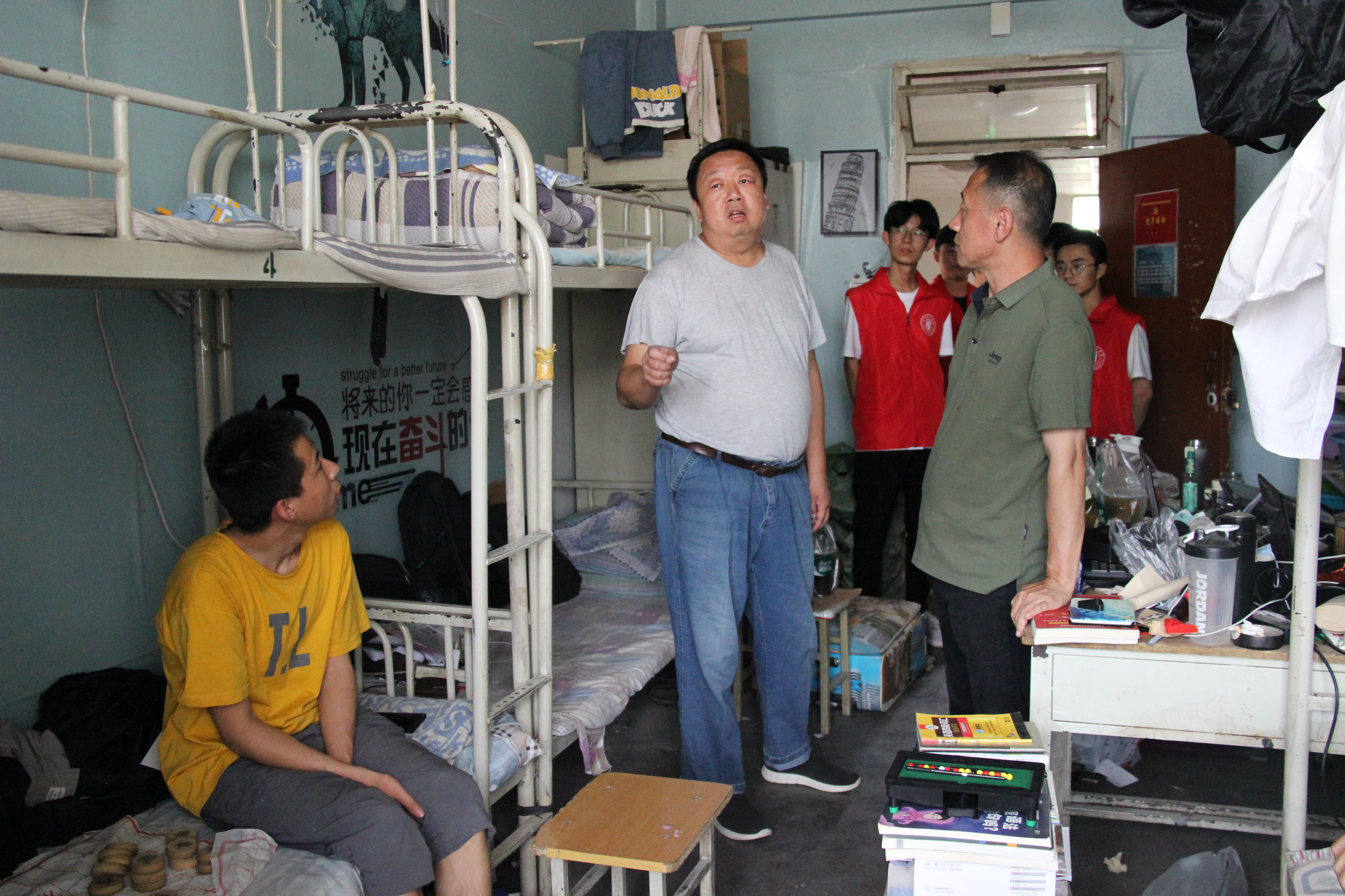 2021年6月29日下午3点,数字媒体学院张毅副院长、团学办荆波主任、辅导员霍峒宇老师及学院学生会干事带领学院志愿服务队的同学,对我院毕业生宿舍进行离校情况了解。