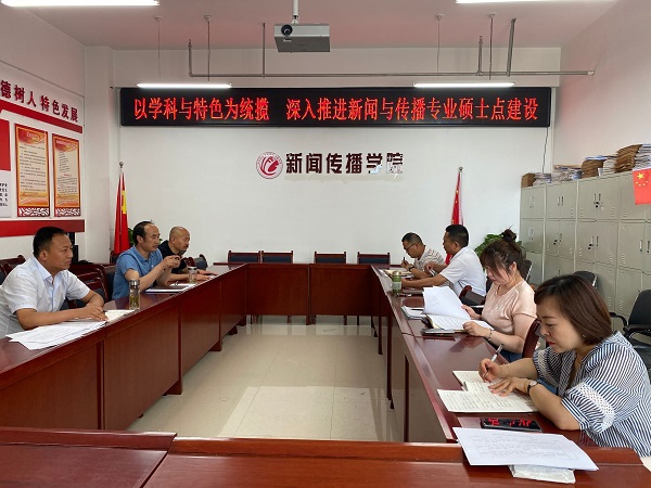 6月29日,新闻传播学院在会议室召开了新闻与传播专业硕士点建设工作推进会。学院领导班子成员、学科带头人、教研室主任和硕点建设相关人员参加会议,会议由党总支书记王全胜主持。