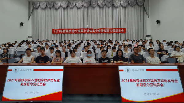 7月8日,数字媒体学院在学术报告厅举行2021年数媒类专业及计算机类专业暑期夏令营动员会。学院院长李恒杰、副院长黄珍、副院长张毅、校企合作办主任蔺国梁、创业就业办主任姚林及18级班主任参加了此次动员会。学院2022届数媒类包括视觉传达设计(数字媒体方向)班、数字媒体技术(虚拟现实与互动媒体)班、数字媒体技术(动画游戏与影视后期)班、数字媒体技术(专升本)班和计算机应用技术专科班;计算机类专业包括软件工程1班、软件工程2班、数据科学与大数据班和计算机网络技术专科班全体同学参加了此次动员会。
