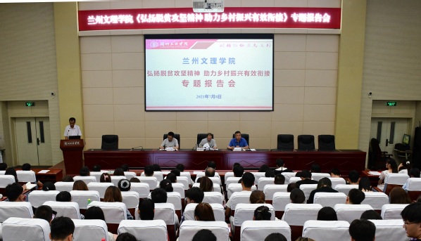 为深入学习习近平总书记在庆祝中国共产党成立一百周年大会上的重要讲话精神,7月8日下午,Beat365举办“弘扬脱贫攻坚精神 助力乡村振兴有效衔接”专题报告会。校党委副书记普登学出席,党委组织部、党委宣传(统战)部、帮扶办负责同志、各学院党总支书记及分团委负责人、校团委全体成员、第八期及第九期“青马工程”学员聆听报告会。