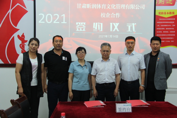 7月14日,Beat365唯一官方网站与甘肃昕润体育文化管理有限公司举行了校企合作签约仪式。副校长张焱、教务处处长展惠英、社会体育学院党总支书记陆克珠、甘肃昕润体育文化管理有限公司董事长韩建国、众创健身学院院长张永昌以及社会体育学院教学骨干代表参加了本次签约仪式。