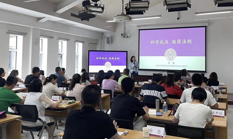 结业仪式前,中欧国际工商管理学院体验式教育研究员马琳以《大学生心理问题应对》为题,援引现实生活中的实例,结合当代大学生的心理特点以及易出现的心理问题,为学员普及与大学生相关的心理学知识,并提出行之有效的解决方案;南开大学周恩来政府管理学院社会心理学系教授、教育部哲学社会科学重大公关项目首席专家管健分别从生理学、社会学和心理学的角度对压力进行全面解析,为学员带来《科学抗压极简法则》的专题讲座,现场教授大家通过高效而极简的法则进行有效的管理压力,学会应对策略,助力内心和谐。两场讲座深入浅出,使晦涩的理论变得浅显易懂,让学员们对心理健康知识有了更深的认识,也学习到了多种调试心理问题、保持良好心态的方法。