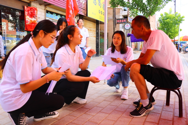 问卷调研,推普力行。为了深入了解当地普通话的使用情况,宣传学好普通话的重要意义,在入户访谈的同时,队员们拿着精心设计的问卷,在村镇主要街道展开问卷调查,同时开展普通话推广与乡村文化振兴政策宣讲。队员们还来到党崾岘村村委会前的新时代文明实践广场进行宣传,并与当地的小朋友一起做游戏,在此过程中向他们宣传学好普通话的重要意义。