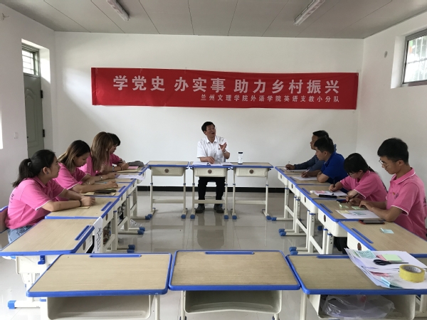 为更好地发挥队员中党员、团员的先锋模范作用,积极践行习近平总书记“七一”重要讲话精神,努力提升自身工作水平,圆满完成支教任务,外语学院党总支书记王燕云组织支教团全体成员认真学习习近平总书记在庆祝中国共产党成立100周年大会上的重要讲话精神及习近平总书记在“七一勋章”颁授仪式上的重要讲话精神,指出要深刻理解习近平总书记对青年寄予的殷切期望,认真学习践行“中国共产党人坚定信念、践行宗旨、拼搏奉献、廉洁奉公的高尚品质和崇高精神”。在交流环节,队员们围绕正在开展的支教活动结合自身感受畅所欲言,纷纷表示将会尽心尽力认真备好每一节课,用心上好每一节课,关心关爱学生的学习和生活,用真诚的关爱、模范的言行的去感染每一个学生,努力成为他们的良师益友。