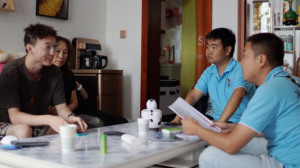 在大滩村309国道沿线的一家商店,宣讲队员向经营者郭小燕及其母亲讲起乡村振兴战略,结合走访调研获取到的当地发展举措与成效,用最朴实的话语向大家解释什么是“产业兴旺、生态宜居、乡风文明、治理有效、生活富裕” 。