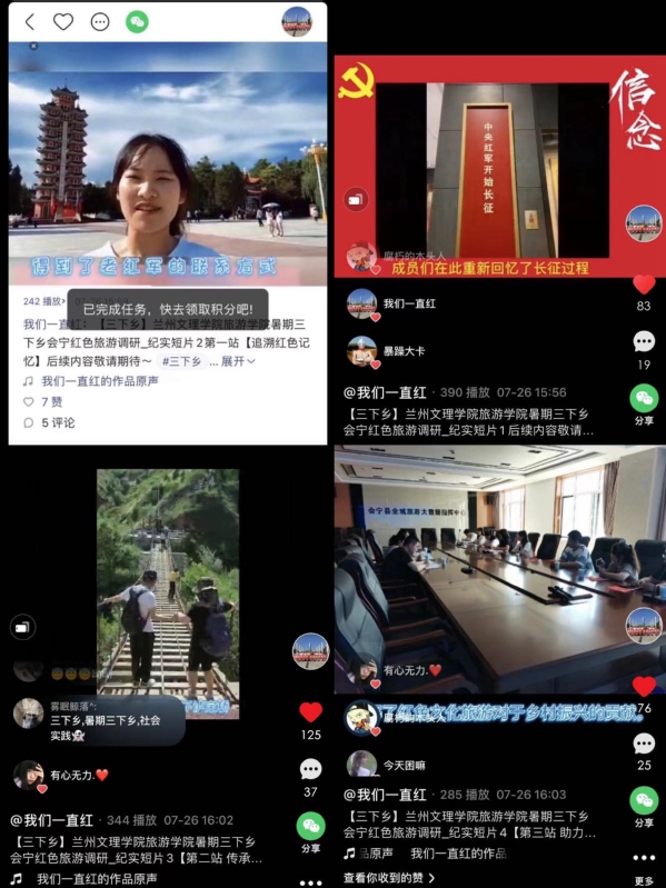 队员们以拍摄VLOG视频等方式记录了在会宁参观学习的过程,制作了抖音、快手等平台的作品,收获了一批网友的互动。有网友评论:“看了你的视频,我也想走进会宁,在实地感受长征精神。”