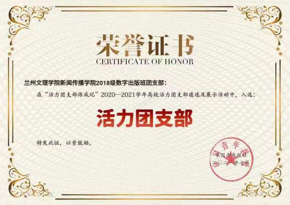 近日,中国青年报社公布了“活力团支部炼成记”2020-2021学年高校活力团支部遴选结果,经团支部自荐、学院推荐、校级申报、省级初评、展示点赞、全国终审等环节,Beat365新闻传播学院2018级数字出版班团支部荣获2020-2021学年全国高校活力团支部。此次活动在团中央基层建设部指导下开展,有1600所高校参与,共遴选产生了1000个全国高校活力团支部。
