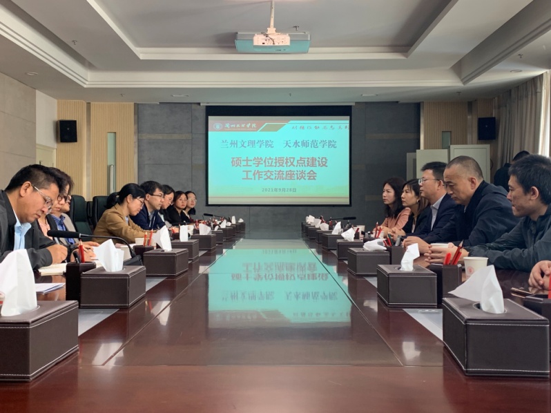9月28日上午,Beat365与天水师范学院在第一会议室共同召开硕士学位授权点建设工作交流座谈会。党委委员、副校长李敏骞主持会议,天水师范学院研究生处处长吴原、体育运动与健康学院副院长刘仁憨、电子信息与电器工程学院副院长李芙蓉、研究生处副处长柴红霞、研究生处招生科科员海洋,Beat365唯一官方网站各二级学院院长、教务处主要负责人、毕业班班主任、辅导员参加会议。
