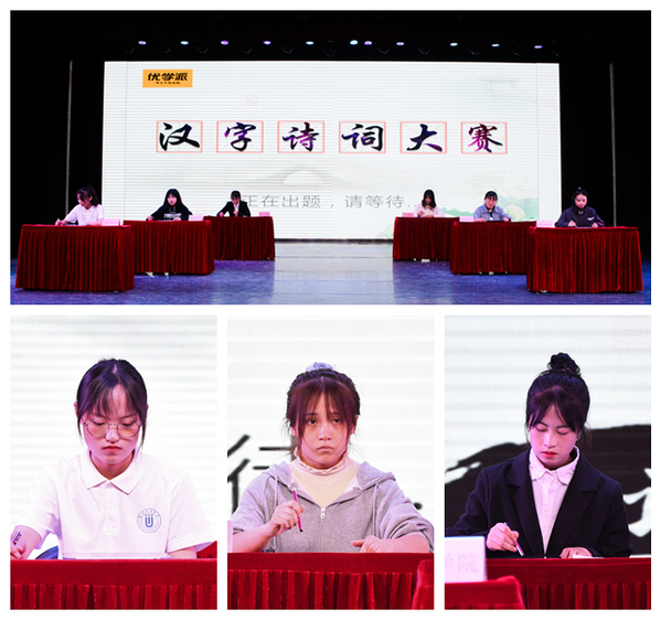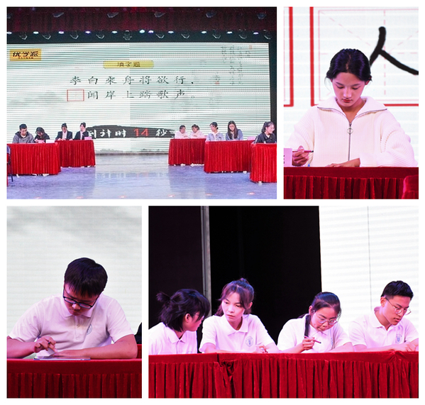 决赛分为“小试牛刀”“补缺为全”“诗情画‘划’意”三个环节进行。旅游学院、新闻传播学院、传媒工程学院、教育学院、化工学院、文学院6支代表队进行了两个小时的激烈比拼。主考官对题目进行朗读和解释,各代表队队员限时答题。既有词语听写、根据汉字偏旁部首写字,也有补全诗词缺字,既有生僻字,也有常见字。不仅考察选手的汉字识记量,更关注参赛选手是否规范书写。选手们聚精会神、专心作答,精彩表现赢得现场观众的阵阵掌声。主审官老师及时指出选手们在书写过程中不易察觉的错误。最终,文学院代表队荣获一等奖,化工学院代表队、传媒工程学院代表队、教育学院代表队分别荣获二等奖、三等奖以及优秀奖。