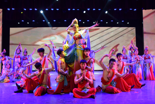 经过前期艺术职业学院敦煌舞专业学生对各学院参赛作品的统一指导和各代表队的精心排练,旅游学院、传媒工程学院、数字媒体学院、新闻传播学院、文学院、教育学院、化工学院7支学院代表队进入决赛依次登台展示。《飞天乐舞》《千年之约》《鸿音》《吟游诗人舞》《一梦敦煌》《繁玄妙引》《凤舞九天》……同学们的舞蹈翩若惊鸿,婉若游龙,或委婉柔美,意境悠远,或大开大合,动感十足,妙手抚琴、飘带轻旋的飞天,婀娜端庄、恬静温雅的菩萨,刚劲有力、威武洒脱的金刚,千手观音、反弹琵琶……舞台上的敦煌元素让整场比赛不仅赏心悦目,更凸显了甘肃特有的深厚文化底蕴与艺术气息。艺术职业学院的同学们带来的表演节目蒙古舞《酒是故乡浓》粗犷豪迈,步伐轻捷洒脱,充满了蒙古男子剽悍英武之美,与敦煌舞相得益彰,将比赛气氛推向高潮。最终,经过评委老师的认真评判,教育学院再次蝉联桂冠,化工学院获得二等奖,数字媒体学院获得三等奖,文学院获得优秀奖。
