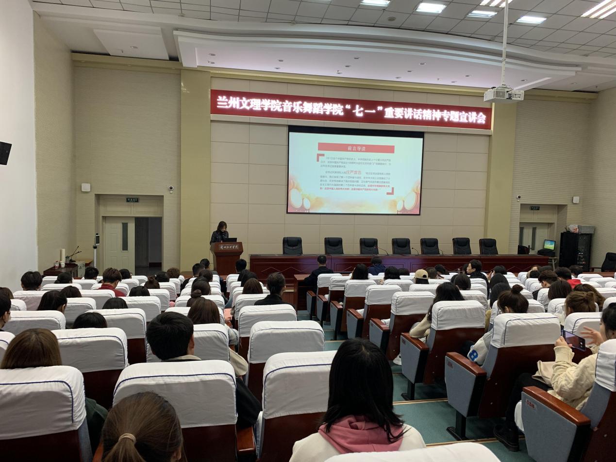为深入学习贯彻习近平总书记“七一”重要讲话精神,引导广大党员、干部、师生学深悟透“七一”重要讲话精神,2021年10月14日,音乐舞蹈学院党总支邀请学校宣讲团成员、旅游学院博士李冰老师以“庚续百年初心、担当育人使命——学习贯彻习近平总书记“七一”重要讲话精神”为题,为音乐舞蹈学院全体教职工、学生党员、入党积极分子、学生代表近200人作了专题宣讲报告,学校党史办张彦荣、刘雨鑫二位老师出席了报告会,学院党总支书记刘东主持了会议。