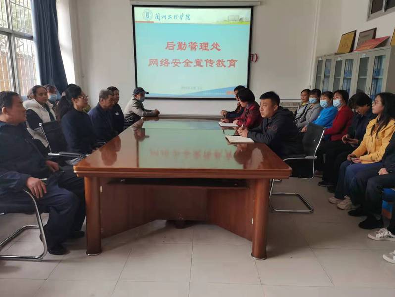 10月13日,后勤管理处物业管理科开展网络安全教育暨工作推进会,会议由物业管理科科长徐文炯主持,后勤管理处党总支书记李耀荣出席,物业管理科保洁部人员、学生公寓和教师公寓全体员工参加。