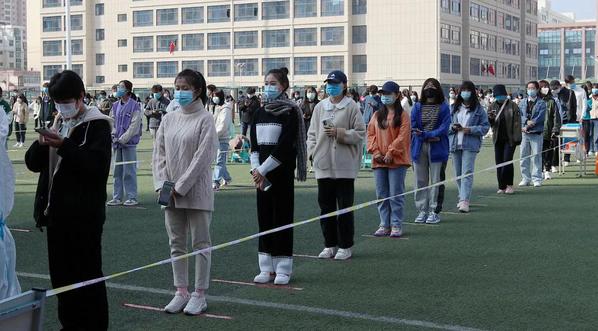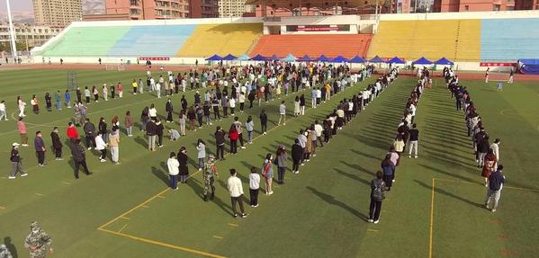 检测期间全体师生佩戴口罩,有序排队并保持一米以上距离,避免人员聚集,积极配合现场医务人员顺利进行核酸检测。
