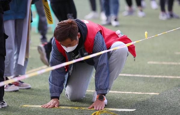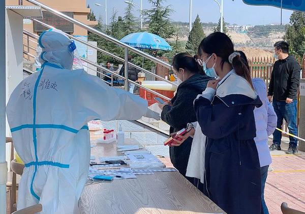 为避免人员大面积的聚集,疫情防控志愿者负责秩序维持,落实一米线、现场测温等工作,保证了检测工作高质量、高效率的完成。