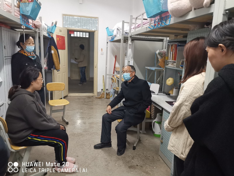 在走访学生宿舍的过程中,李敏骞反复提醒同学们一定要注意个人防护,按照学校要求进行核酸检测,在校内食堂用餐时应打包带走,做到不点外卖、不聚集,要求学院班子成员和老师一定要关心、重视学生在宿舍的学习、生活遇到的问题,及时解决学生们的困难,发挥好党团组织和学工干部在学生工作中的作用,师生一心,共同打赢此次疫情防控阻击战。