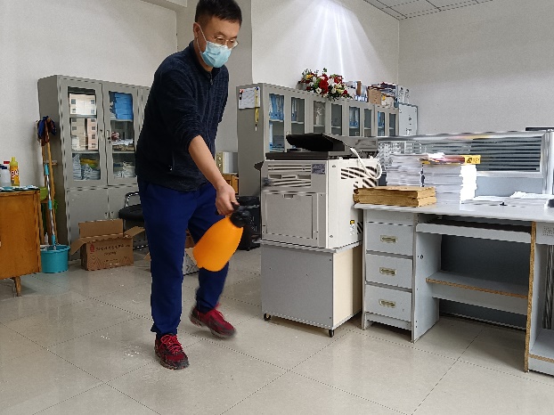 教务处、质量监测与评估中心党支部在积极参与疫情防控志愿服务的同时,首先保障了学校教学管理工作,根据疫情防控特殊时期采取特殊措施,将疫情防控与业务工作两手抓:成立线上教学技术保障组与协调组,对线上教学进行情况调研与师生困难排查,确保教师顺利进行网络授课、保证学生参加网课学习;积极联络沟通,采购消毒液、酒精、额温枪、消毒喷壶、口罩等防疫物品,对教务处所属楼层进行全面消毒,保证防控工作与日常工作两不误。