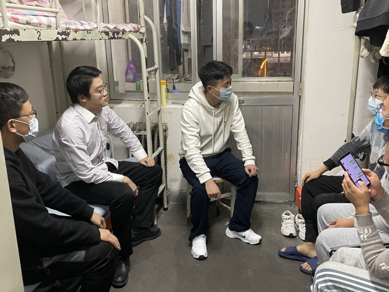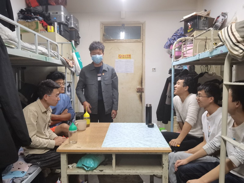 支部党员组建了“疫”线信息宣传组,开展“党员进宿舍”活动。支委会制定了进宿舍的相关操作流程步骤。通过深入联系班级宿舍宣传疫情防控知识、了解学习生活方面存在的问题,交流安抚同学们的焦虑情绪等活动,带动同学开展线上学习,增强参加核酸检测等集中活动的积极性。针对走访过程中发现个别宿舍饭盒不扔的情况,及时要求同学们进行改正,防止细菌滋生。
