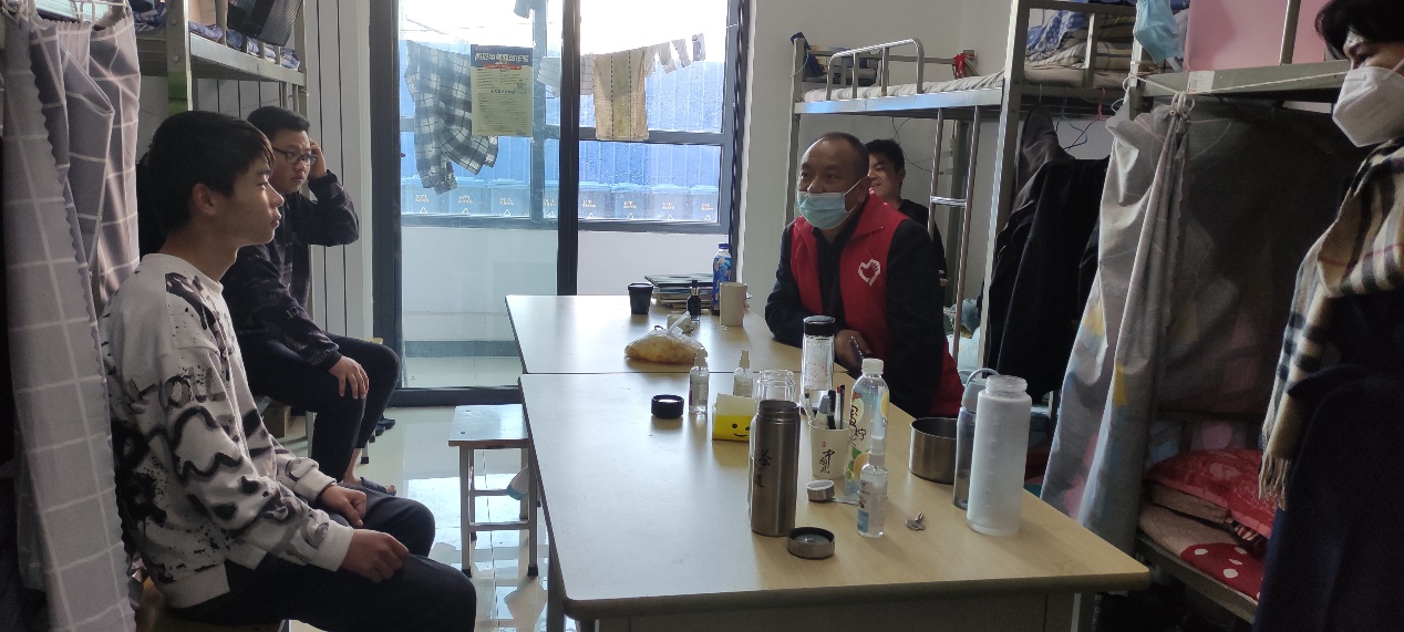 走访过程中,院长陈秀武与同学们进行亲切交谈,叮嘱同学们严格遵守疫情防控期间学校的各项管理规定,要注意防护,科学防疫,重点要抓好个人防护和按时报送一日三次体温检测,搞好个人和宿舍卫生,保持宿舍和楼道的整洁,时常通风,做好日常防护。再次强调宿舍用电安全,提醒大家合理用电,杜绝使用违章电器。最后叮嘱同学们不造谣、不信谣、不传谣。师生倾心交谈,氛围融洽。