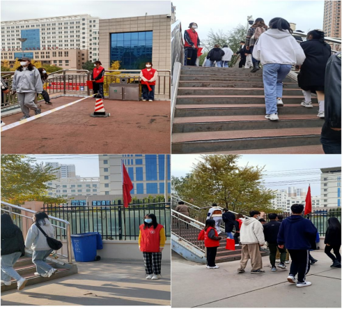 学生党支部在带领党员科学防疫、保护好自身的同时,不断增强党员责任意识,号召党员奉献爱心、爱国力行。支部成员王蕊同志第一时间申请加入守护天桥青年志愿者服务活动,提醒同学们正确佩戴口罩,引导同学们有序通过天桥到达核酸检测场地等。面对疫情敢于担当、迎难而上、无偿参与,为疫情防控贡献一份力量,是学生党员志愿服务真实的写照。