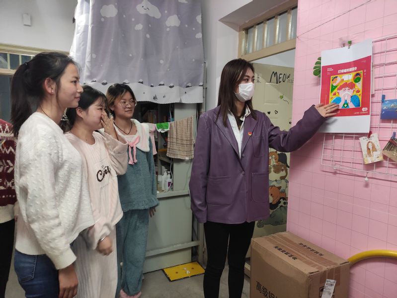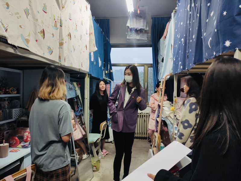 党旗引领,支部靠前,党员戴党徽亮身份。走访宿舍期间,支委成员与同学们亲切交谈,积极询问同学们在学习生活中的困难,并竭力提供帮助。支部副书记张博为同学们宣读了《高等学校新冠肺炎疫情防控技术方案》及其他重要文件要求,并在宿舍张贴防疫宣传海报。敦促大家要正确理解、积极配合、科学参与疫情防控,不恐慌、不信谣。同时,支部党员还主动了解学生线上学习的情况,勉励大家要克服疫情防控工作带来的不便,制定科学的作息计划,充分利用丰富的网络课程资源,保证学习效果始终“在线”;注意保持宿舍卫生环境,戴口罩、勤洗手、常通风,养成良好的生活习惯。
