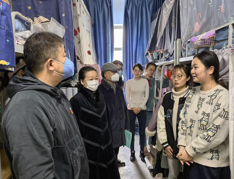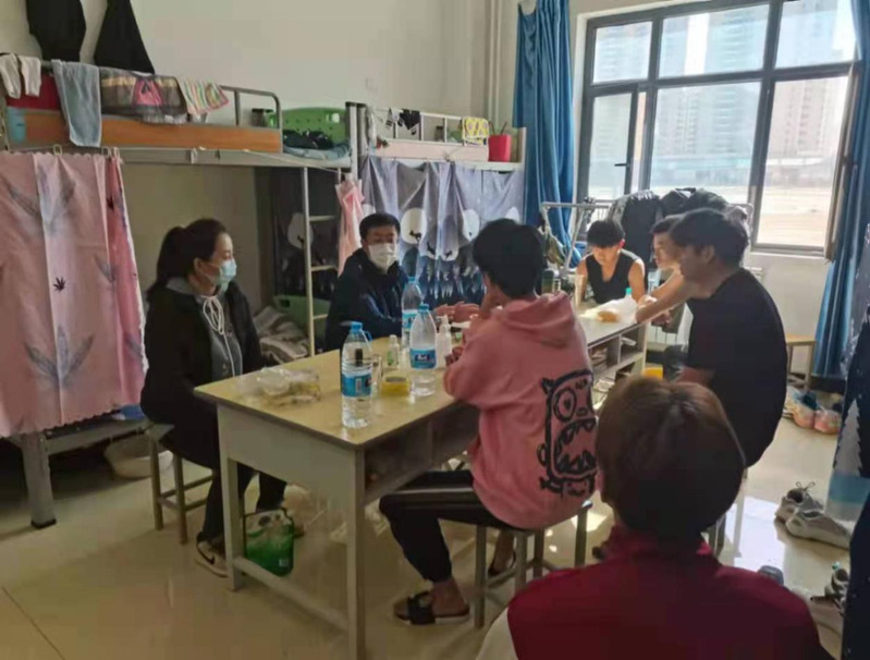 走访过程中,老师们与同学们进行亲切交谈。“有没有在适当范围内进行身体锻炼?每天的晨午晚检测、晚点名是否按时进行上报?是否严格执行学校疫情防控相关制度,做好防护?大家在生活中有什么困难?......”所到之处,一方面老师们进一步宣传学校封闭管理期间防疫的各项要求和注意事项,提醒同学们增强安全防范意识,自觉遵守各项规定做好自我防护,加强自我调适,保持积极乐观的心态,支持配合学校做好疫情防控工作,身体力行维护校园安全稳定;另一方面亲切地询问学生的学习、生活、思想状况,再次强调宿舍用电安全,提醒大家合理用电,杜绝使用违章电器,注意保持良好的宿舍卫生,定期通风。最后还叮嘱同学们不造谣、不信谣、不传谣。同学们一致表示,一定会严格遵守学校疫情防控相关规定,配合防疫工作。师生倾心交谈,氛围融洽。