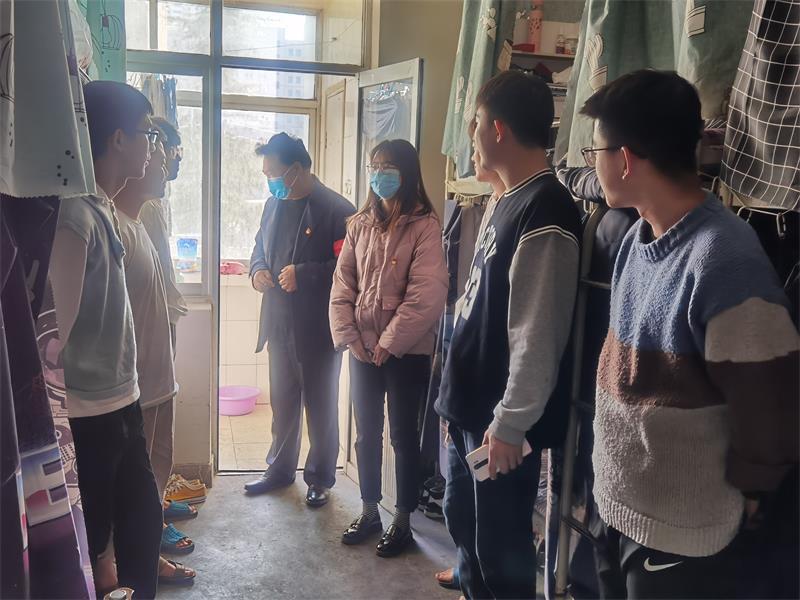 保卫处党支部分成三个小组,重点对学生宿舍疫情防控措施、宿舍安全情况、以及卫生整洁情况等进行检查和指导。党支部书记高勇、副处长魏建明等党员在走访中详细询问同学们现在的学习、生活情况,提醒同学们注意宿舍安全、用电安全和消防安全,引导同学们要及时清扫宿舍卫生,勤洗手、多通风,保持宿舍干净整洁。并叮嘱同学们适度锻炼身体,少玩网络游戏,切勿沉溺游戏世界。同时提醒广大学生在当前疫情防控常态化的形势下,自觉遵守校纪校规,增强安全防范意识,积极消除安全隐患,做到防患于未然。