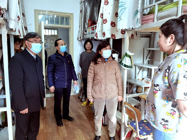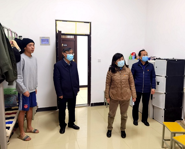 11月10日,校党委委员、副校长张兆勤深入6号楼、9号学生宿舍楼,看望慰问因疫情在宿舍进行线上学习的同学们,查看学院关于疫情防控期间学生宿舍管理服务情况。