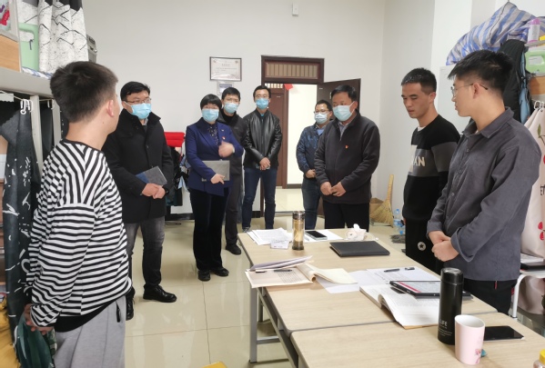 走访中,郭鸿斌详细了解学生疫情期间的生活状况与心理状态,了解线上学习及生活上遇到的困难,对宿舍开展宿舍文化、保持积极向上的心理状态表示肯定。展丽蕊询问了学生的三餐情况,希望同学们要制定科学学习计划,做好宿舍日常通风及各项防控措施。李军勉励同学们要保持乐观心态,遵守学校学院的相关安排,上好每一节课。