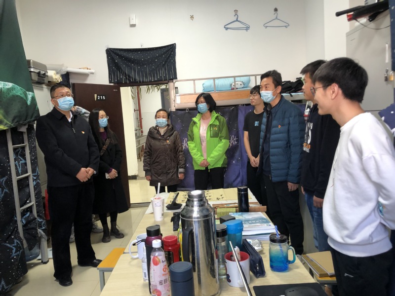 李先锋同志与大家一行来到9号学生公寓部分党员所在学生宿舍,与同学们开展座谈交流,详细了解疫情期间学校伙食价格、生活、思想状况以及线上学习等情况,鼓励同学们严格按照学校防疫要求和规定,保持乐观积极向上的良好心态,不信谣不传谣,科学防疫,安心学习。在交流中,李先锋对同学们良好的生活学习状态给予充分肯定,并嘱咐同学们做好个人防护,保持健康的生活方式和良好的精神面貌。