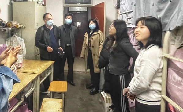 11月10日下午,宣传部发规处党支部联合文学院第二学生党支部开展结对共建抗“疫”行动,进一步扎实做好常态化疫情防控工作,深化党建结对共建成果,持续推动“我为师生办实事”活动走实走深。全体党员由校党委副书记普登学带队,分组深入文学院多个学生宿舍,了解倾听学生心声,解决学生的“急难愁盼”问题。