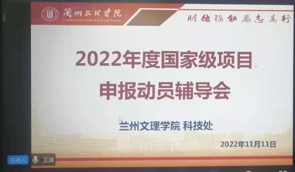 为进一步做好2022年度国家级项目申报工作,11月11日下午,科技处通过钉钉会议形式组织召开2022年度国家级项目申报动员辅导会。会议邀请文学院叶淑媛教授作国家社科基金项目申报辅导、化工学院获得2021年度国家自然科学基金项目的青年教师汪建义博士作申报经验分享。全校拟申报2022年度国家级项目教师、副高级以上职称教师、近三年新入职教师、各二级学院分管科研院长和科研秘书共计140余人参加会议,会议由科技处处长王源主持。
