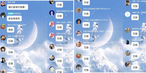 经各学院分团委推荐,19个团支部入围本次“十佳主题团日”评选答辩会,各参评团支部代表依次展示。同学们从活动背景与意义、开展过程、特色亮点、活动总结等方面,结合精心制作的PPT进行了汇报,充分体现了各团支部鲜明的活动主题和团支部风采,展现了各团支部的组织活力。各参评团支部代表分组进入汇报现场,认真观摩学习;线上群课堂“弹幕”不断,观众们热情点赞,积极参与线上投票,营造了“比学赶超”的良好氛围。