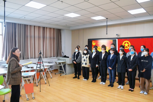 11月13日下午,“请党放心,强国有我”主题团日评选答辩会在学校智慧教室举行。在疫情防控的特殊背景下,此次评选采用线上线下相结合的方式,由校团委安婧老师、牛晓春老师担任线下评委,各学院分团委副书记、班级团支书、团员青年代表观看线上群课堂直播,315人参与线上投票。