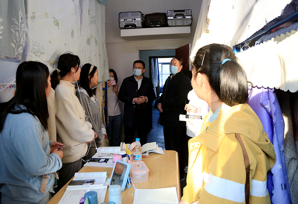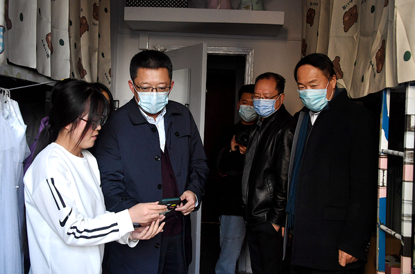 在走访过程中,宣传部发规处支部党员和学生党员们亲切交谈,了解学生党员思想动态。文学院党总支书记郑建勤提醒同学们要做好疫情防控和宿舍消防安全工作,认真维持好宿舍卫生;宣传部发规处党支部薛怀庆同志鼓励同学们利用好封闭时期的课余时间,提早做好个人职业规划,为日后就业打好坚实基础。在封闭期间要合理作息,遵从学校疫情防控要求,不离校、不点外卖,克服困难,认真学习,与舍友和睦相处,共同营造良好的宿舍氛围;师克谦同志强调在疫情期间,同学们需理性看待疫情发展状况,在官方网站获取信息,对于疫情发展动态做到不信谣、不传谣、不造谣。作为党员,更应加强宣传引导,让防疫知识深入人心,让战疫状态不懈不怠,始终坚定抗疫必胜的信心与信念。