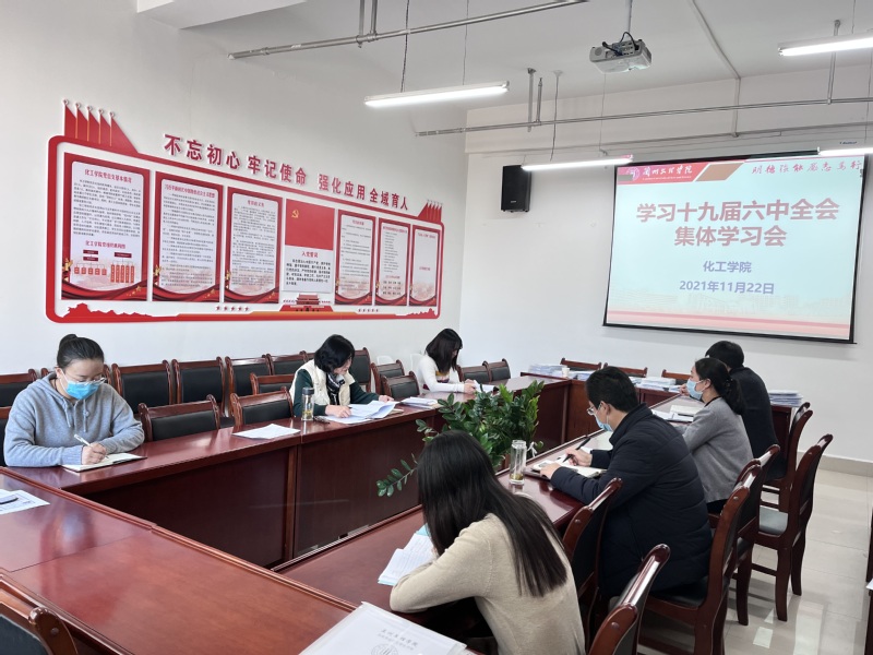 11月22日,化工学院在会议室召开中心组学习会专题学习党的十九届六中全会精神,学院党总支委员及行政人员参加了会议,会议由党总支书记贺志军主持。