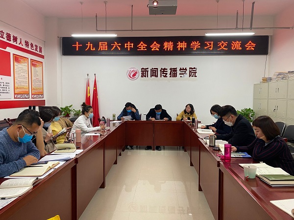 为推动深入学习贯彻党的十九届六中全会精神,新闻传播学院迅速组织部署,以支部为单位,通过个人自学、集体交流座谈等形式开展学习。11月25日,学院党总支在会议室召开学习交流会。会议由党总支副书记张春霓主持,学院全体无课教师参加。