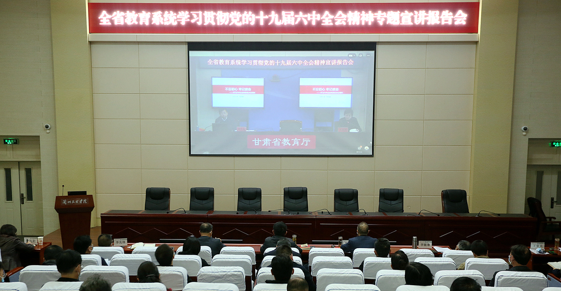 11月29日下午,Beat365在学术报告厅参加了全省教育系统学习贯彻党的十九届六中全会精神视频宣讲报告会。兰州大学马克思主义学院教授、博士生导师刘先春作宣讲报告。全体校领导,机关党委书记、各党总支书记、二级学院院长、各支部书记,机关各部门主要负责人,各民主党派负责人,马克思主义学院全体教师,学生代表共计120余人收看了宣讲报告。
