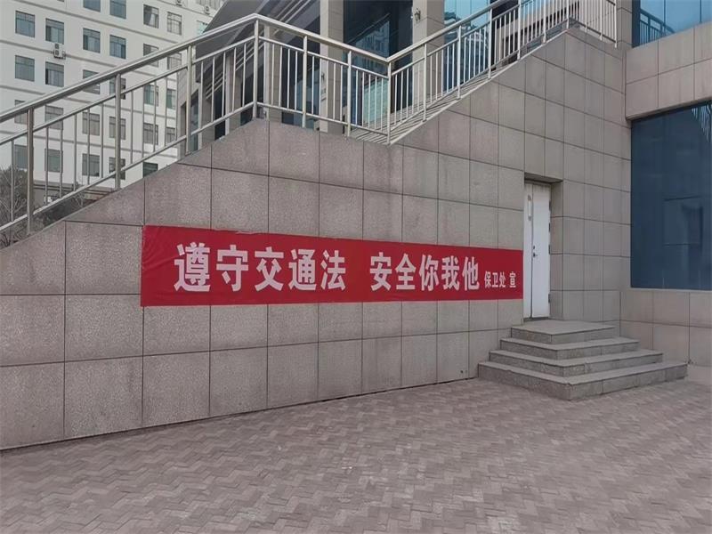 保卫处在校园关键部位布置“遵守交通法,安全你我他”和“遵守交通法是每个公民应尽的义务”等横幅,倡导师生遵守交通法规,使其成为文明交通的宣传者和践行者,大力弘扬“走文明路、开文明车、做文明人”,把“122”全国交通安全主题宣传深入到每一个老师和学生心中。