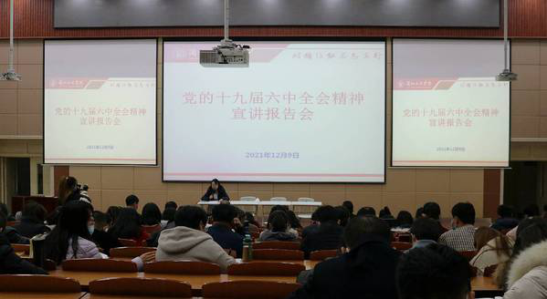 报告系统讲解了党的十九届六中全会的主要议程、内容和《决议》的重要意义。并要求各部门结合自身学习、工作和个人发展,深入学习宣传和贯彻落实党的十九届六中全会精神,为学校高质量发展贡献力量。