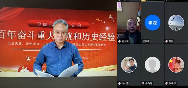 12月6日,副校长张焱在线上为社会体育学院全体党员、教务处、招生就业处、科技处、学报编辑部以及图书馆教师代表作党的十九届六中全会精神专题宣讲报告。