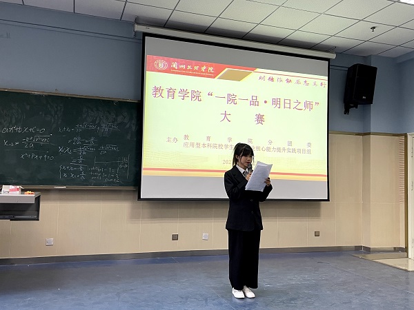 参加决赛的16位选手,是由各班级初赛选拔进入决赛,比赛的出场顺序抽签决定。比赛开始后,参赛选手依次上台,展示自己的风采,讲课内容涉及义务教育阶段数学、语文、历史,学前教育阶段语言、社会、健康各领域等多个方面;同学们大方的仪表、优美的声音、激昂的语调,恰当的手势活跃着现场的气氛,展现了自己教学内容设计、教学互动组织、重难点把握、教态表现、教学特色等方面的素质与能力。