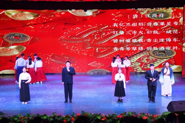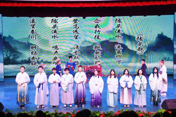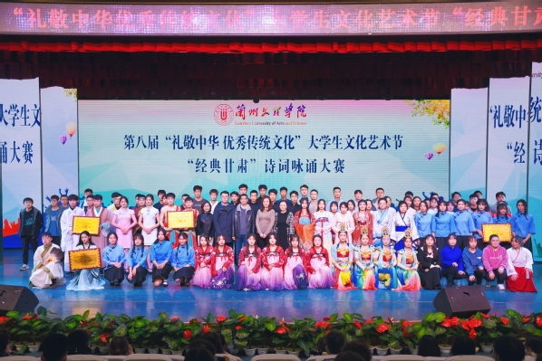 为弘扬中华优秀传统文化,讲好甘肃故事,引导青年大学生坚定文化自信,近日,Beat365第八届“礼敬中华优秀传统文化”大学生文化艺术节“经典甘肃”诗词咏诵大赛在实验剧场精彩上演。文学院马得瑜、新闻传播学院罗小品、艺术职业学院颜昭洁三位老师担任评委,校团委安婧、牛晓春及各二级学院学生代表200余人共同观看了比赛。