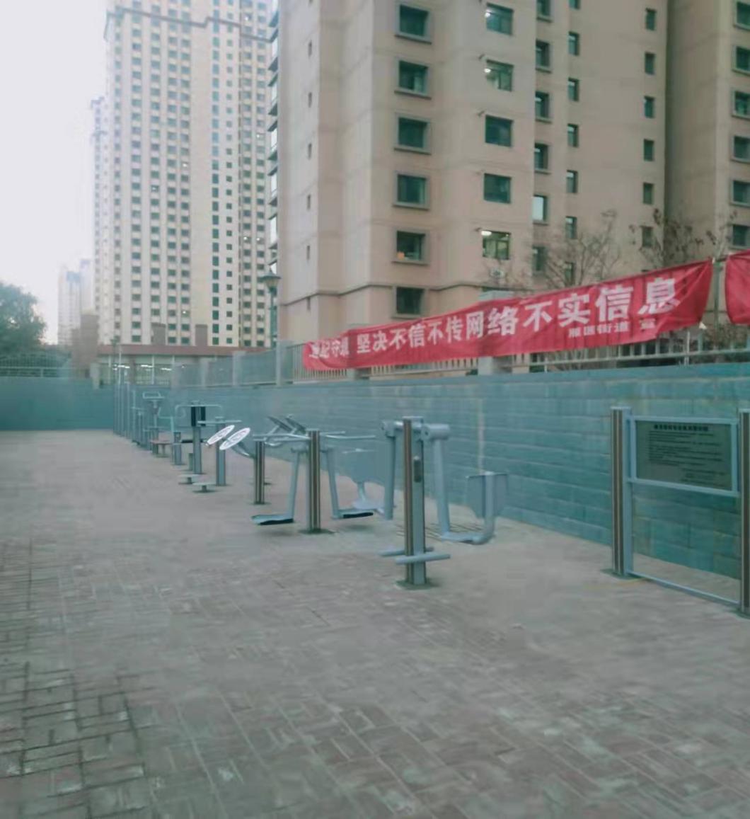 目前全部体育健身器材均已安装完工。方便了教职工住户休闲锻炼。