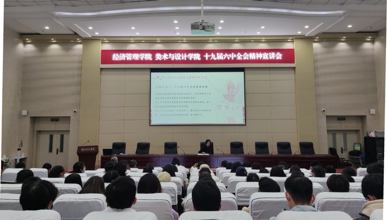 12月16日中午,经济管理学院和美术与设计学院在学术报告厅举行学习党的十九届六中全会精神宣讲会,学校党史学习教育宣讲团成员、旅游学院教授、人事处副处长张惠博士作了“高扬青春理想,践行使命担当,做最美的中国形象”宣讲报告。经济管理学院和美术与设计学院学生党员和各班学生干部及学生代表近200人参加报告会。