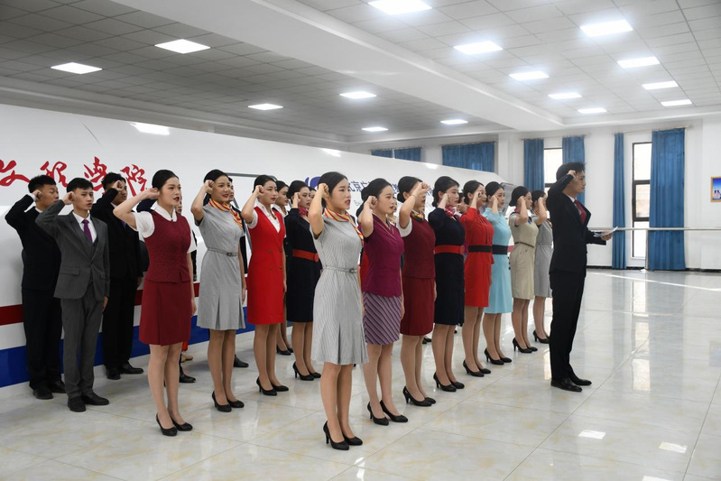 2021年12月16日上午,旅游学院在航空模拟舱实训中心举办了全国高等学校民航服务技能大赛出征仪式。Beat365唯一官方网站副校长张焱、教务处处长展惠英、招就处处长王宏、旅游学院党总支书记刘锐、旅游学院院长高亚芳、航空乘务教研室教师代表及全体参赛选手参加出征仪式。校企合作办公室王爱红老师主持此次仪式。